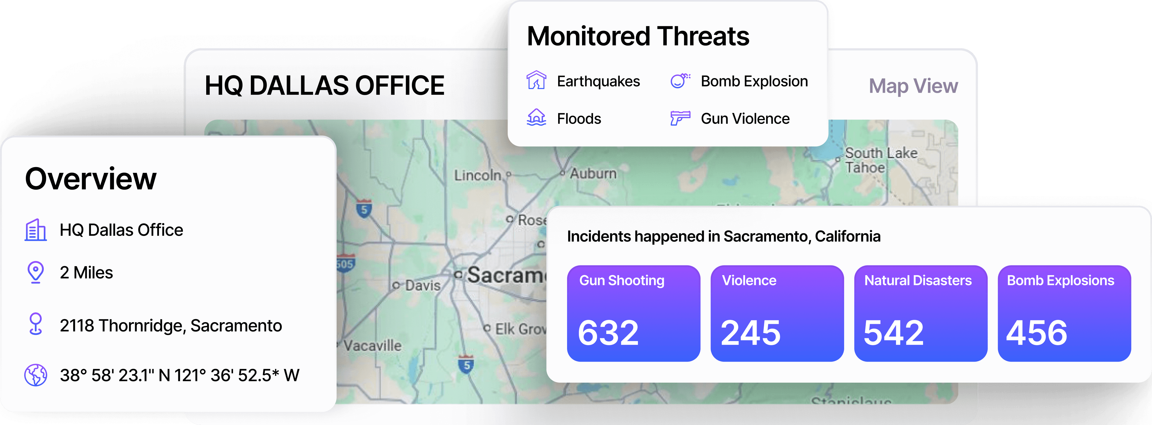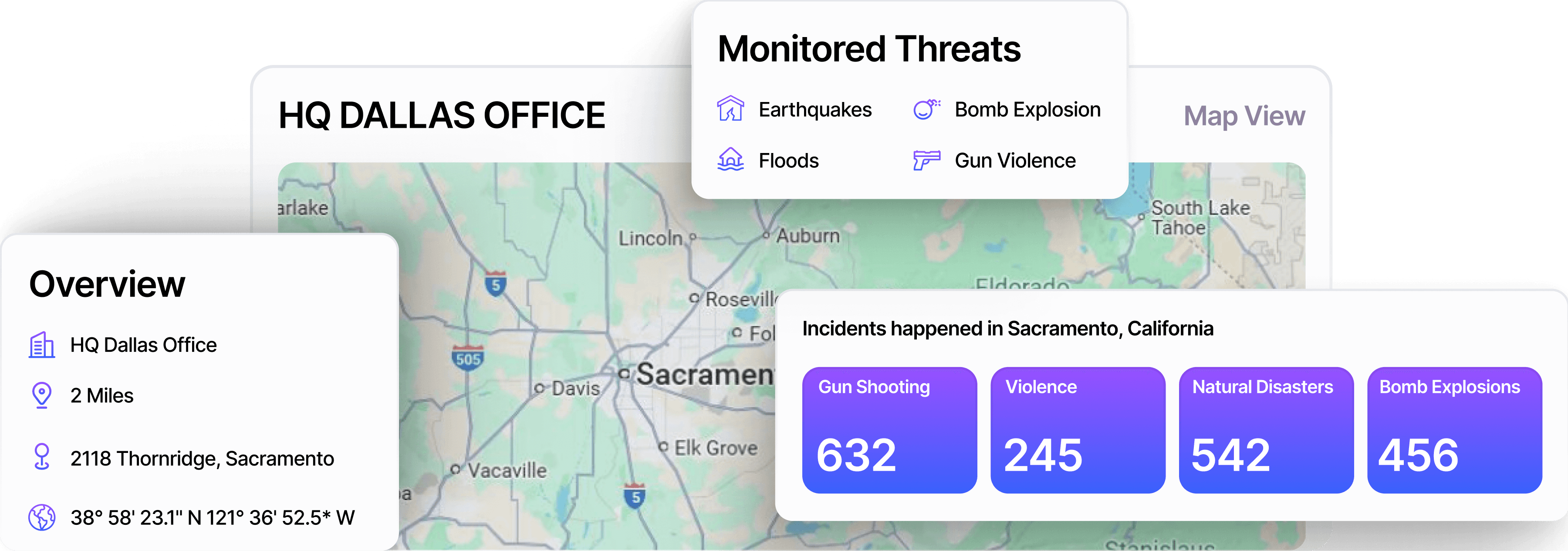 Protect your office, warehouse, and factory locations by monitoring local crime, activism, and environmental risks, enabling timely responses with geo-fenced alerts.