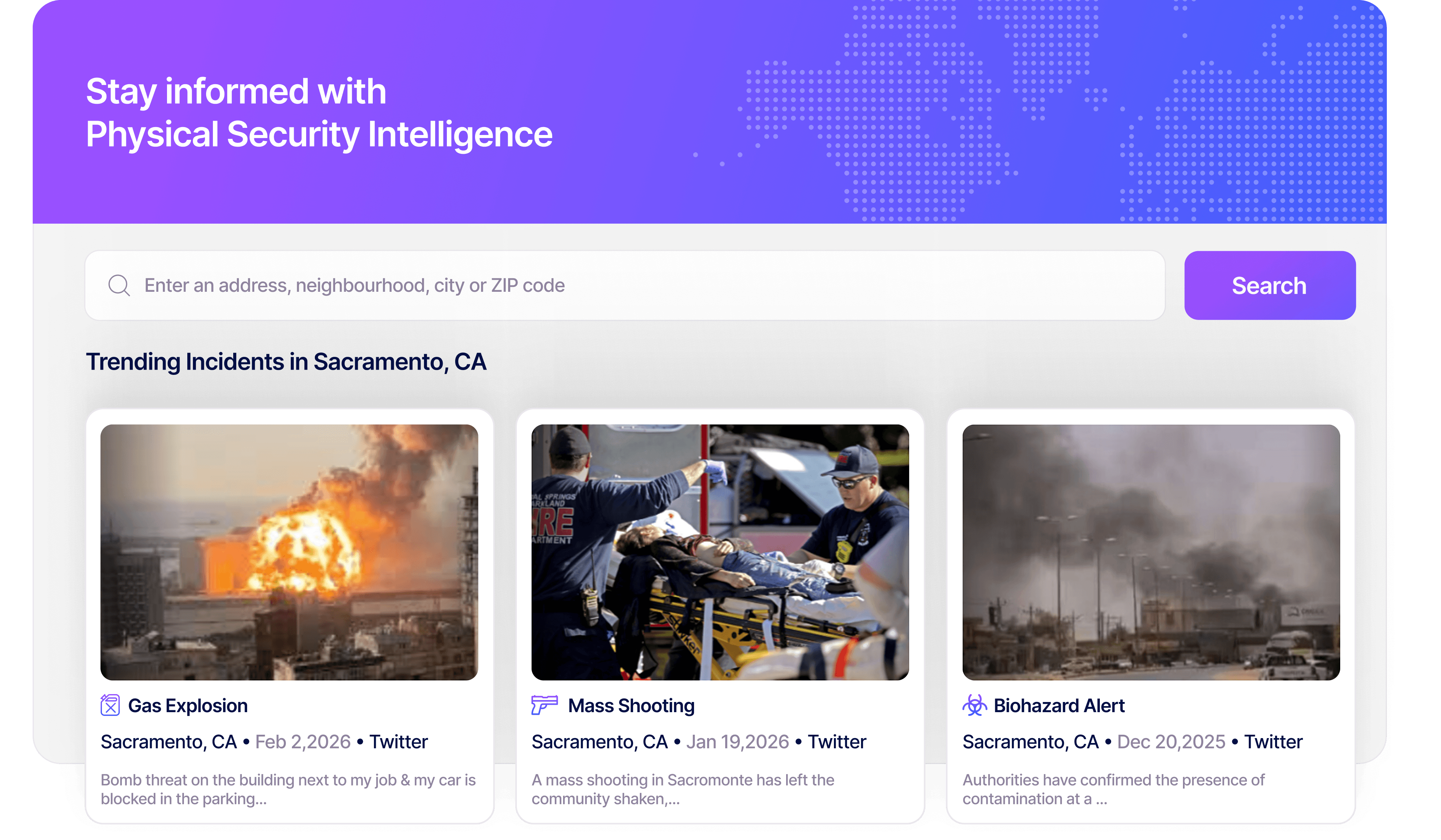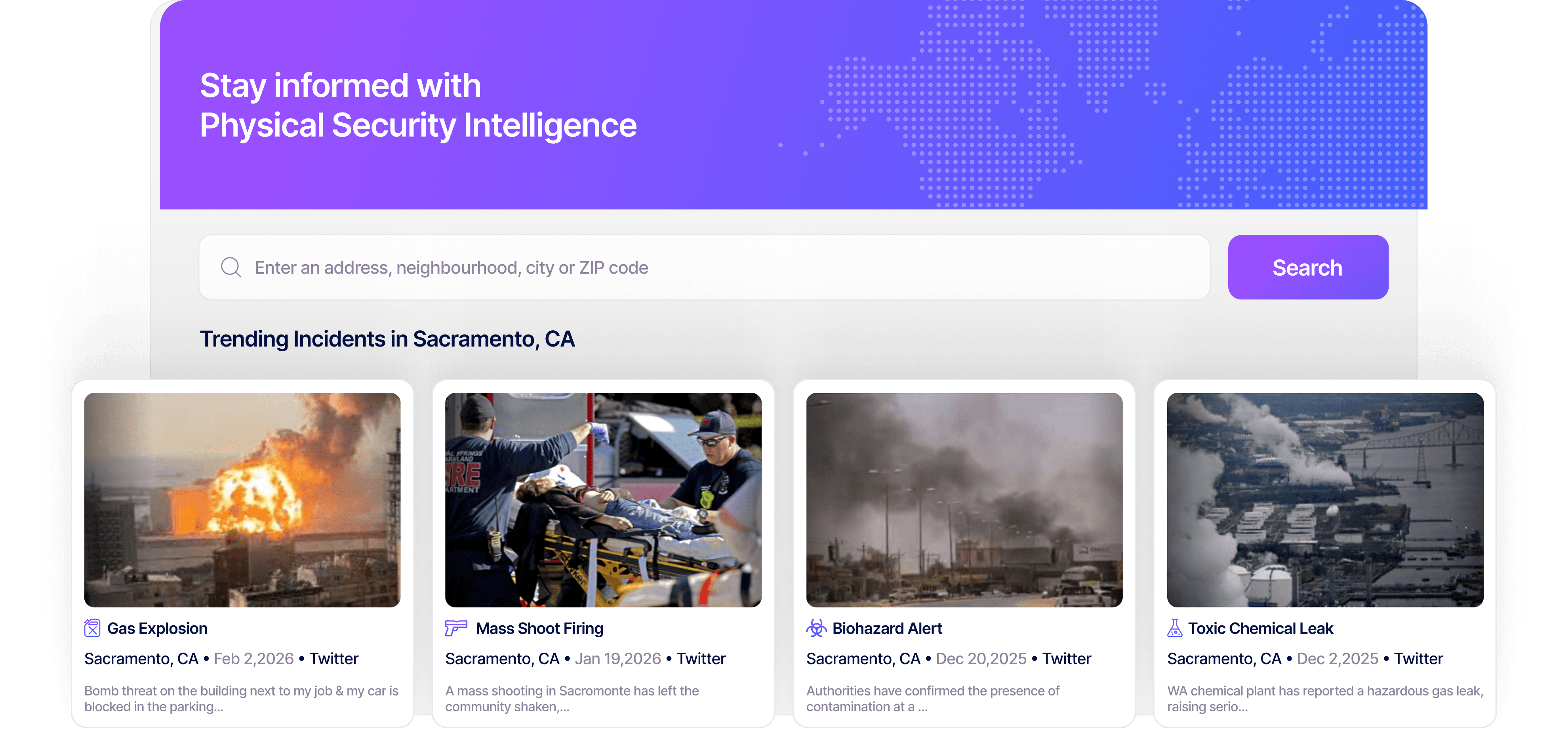 Leverage real-time external threat intelligence to assess, visualize, and respond to potential physical security risks, ensuring the safety of your operations and workforce.