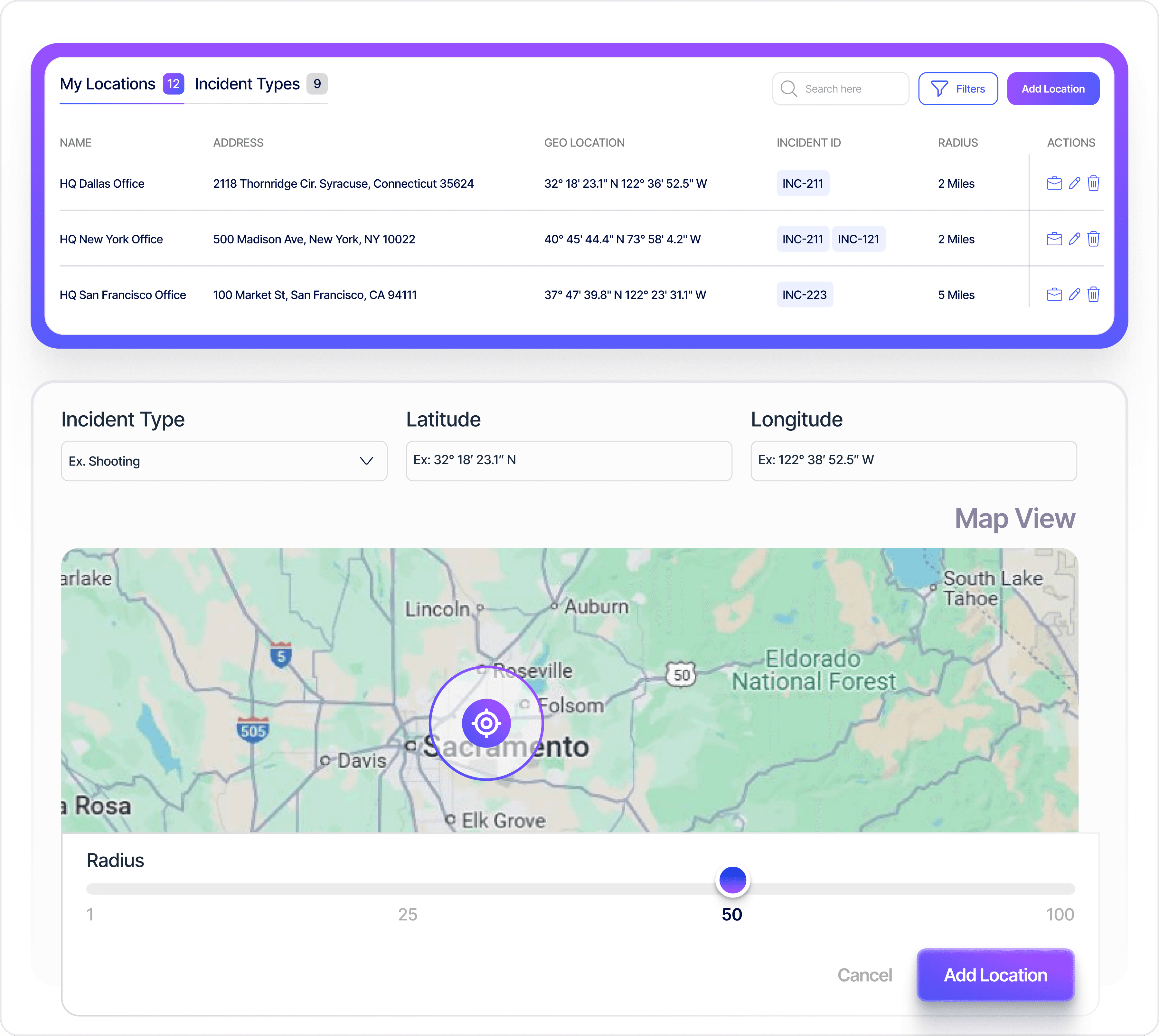 Geo-fence key business and operational locations for instant alerts and faster threat response.